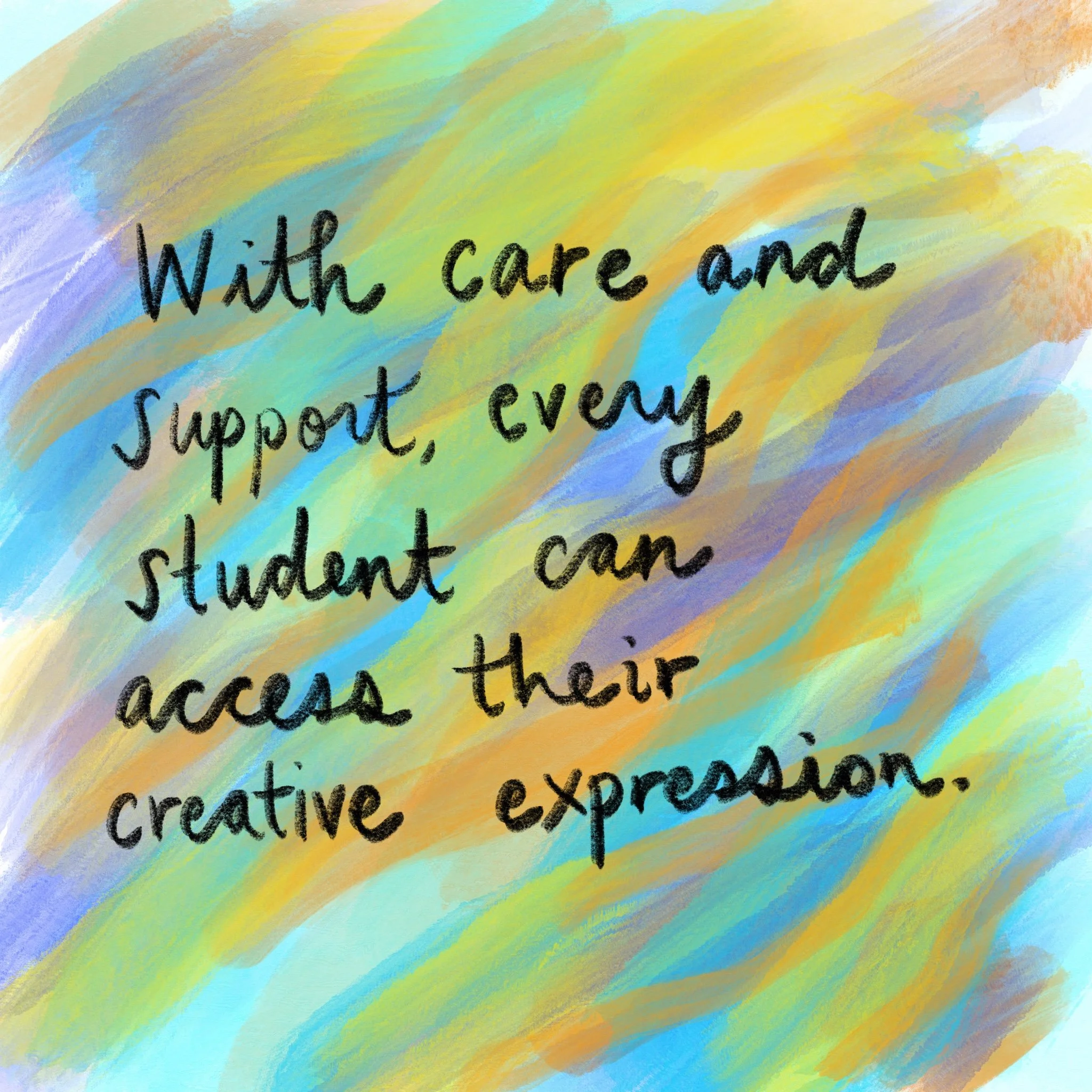 My teaching philosophy is rooted in ensuring that each student leaves my classroom knowing that they are creative. I am committed to supporting my students to develop confidence in continuing to expand their relationship to creativity outside of art class. As a teacher, I am an advocate for equity in the arts, and the accessibility of art for everyone.